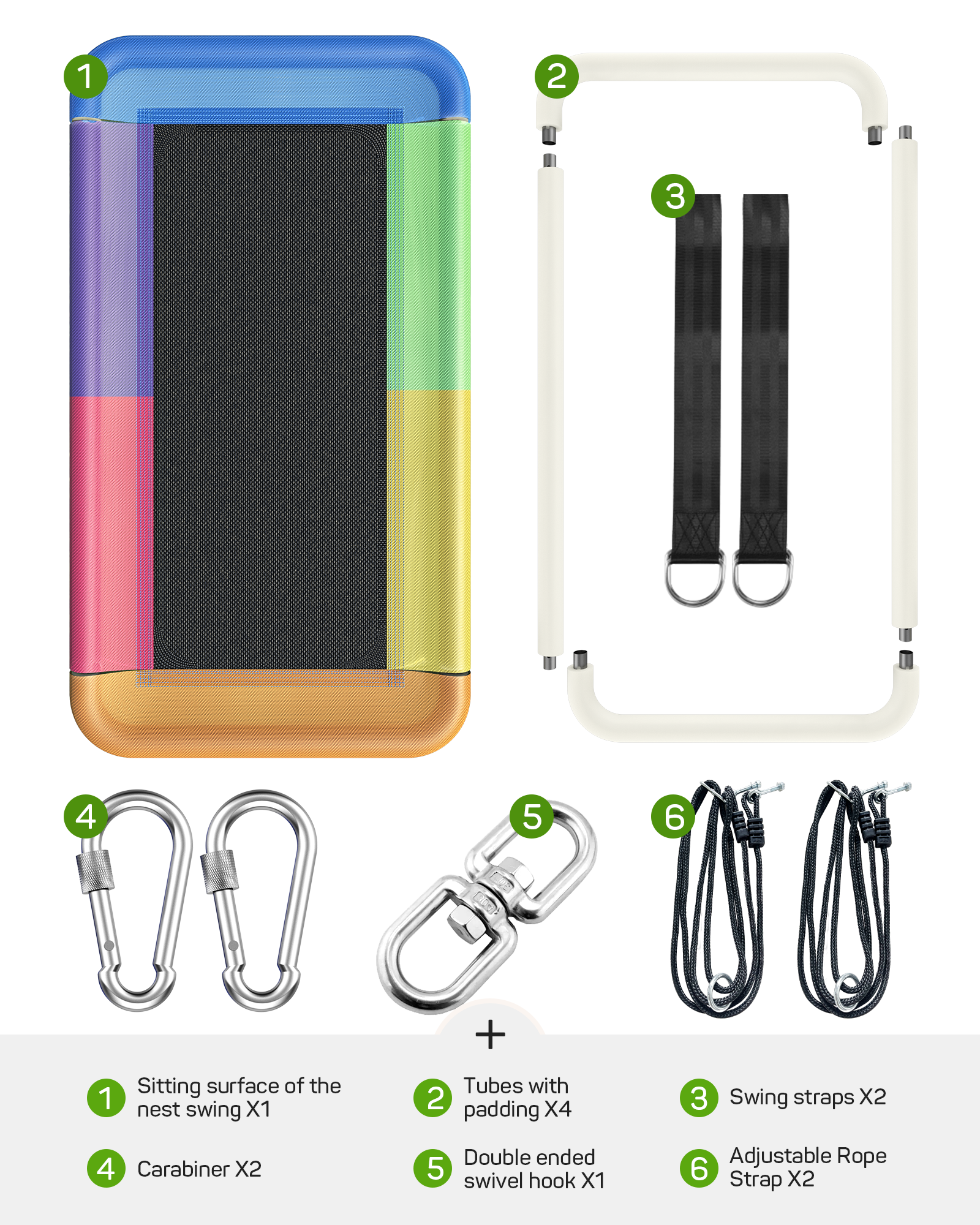 - 【Effortless Installation】Setting up this rectangle platform swing is hassle-free with clear instructions included. Adjustable ropes and durable hardware ensure the swing can be easily mounted on trees, swing sets, or other sturdy structures. The integrated plastic connectors at the rope ends ensure secure fastening, minimizing risks of breakage or rust.