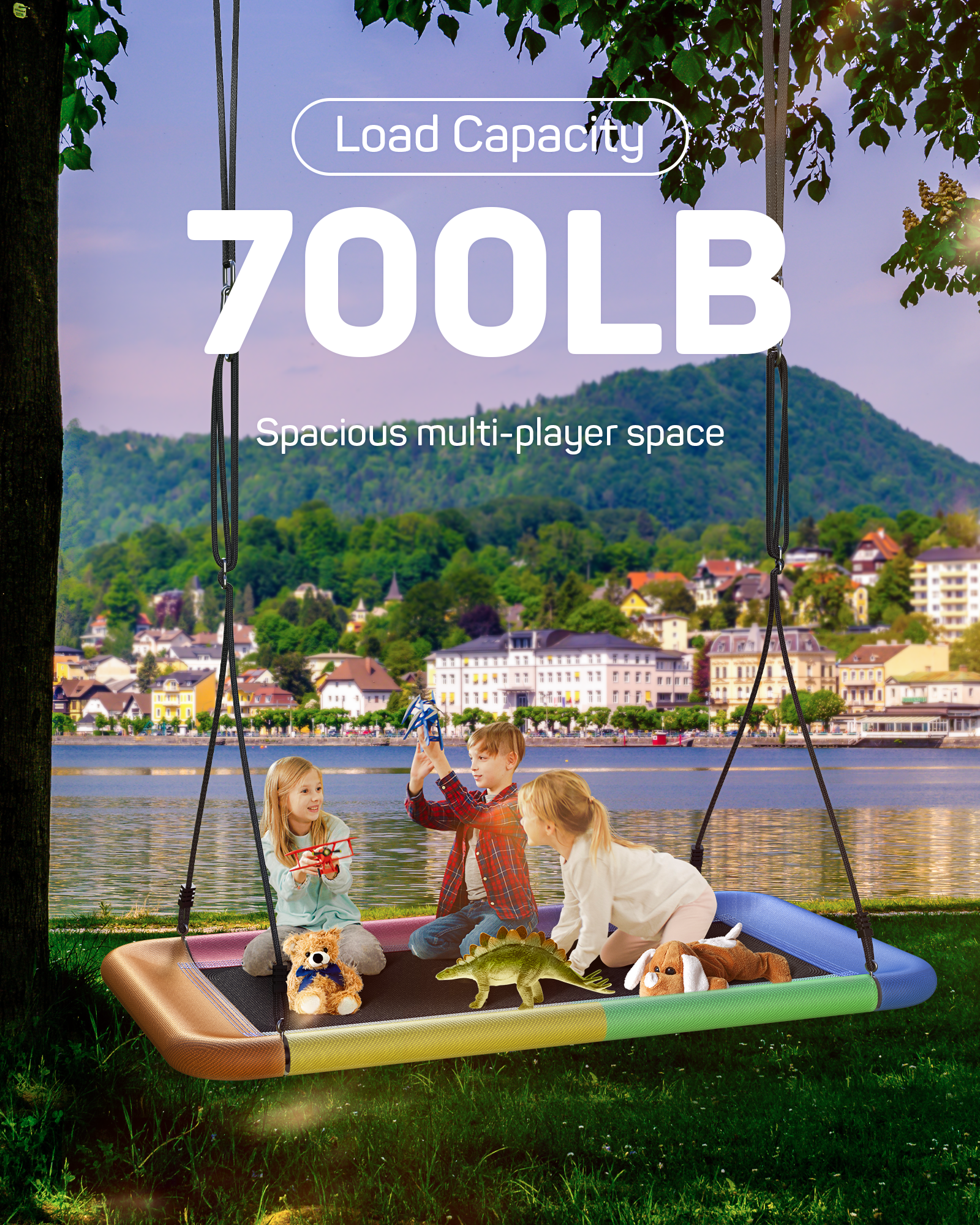 - 【Spacious 60" Rectangle Swing】Measuring 60 inches, the large rectangular platform offers plenty of room for multiple users at once, accommodating children and adults alike. Perfect for family activities, allowing parents and kids to play together in the backyard or indoor play areas, creating joyful moments and strengthening bonds.