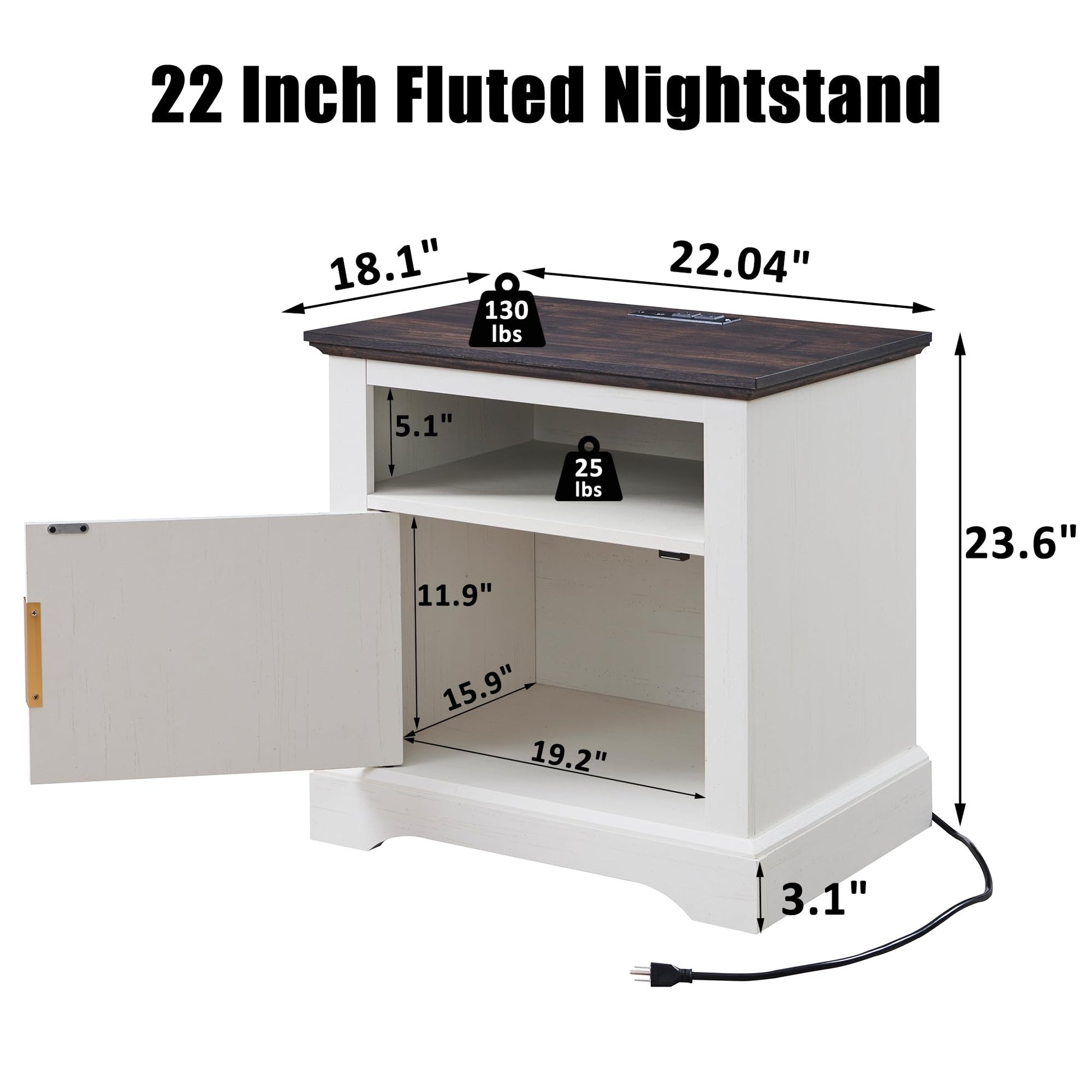 - 【Spacious Storage Space】Nightstand Dimensions:18.1"D x 22.04"W x 23.6"H. Open Shelf Dimensions:15.9"D x 19.2"W x 5.1"H. Not only does this side table have a 22" wide table top, but it also has plenty of space (11.9" high/15.9" deep) inside the storage door for your belongings