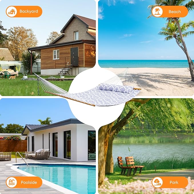 Double Hammock with Spreader Bar,Soft Pillow,Max Load 500lbs,Portable Hammock for Outdoor,Camping,and Backyard
