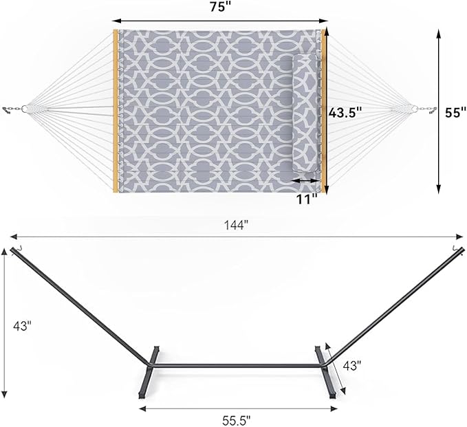 - 【Easy To Clean & Replace】: The double hammock with stand comes with a double quilted mattress, which is filled with high quality polyester fiberfill, soft and comfortable. Both the mattress and pillow are easily removable, making daily cleaning and replacement a breeze.